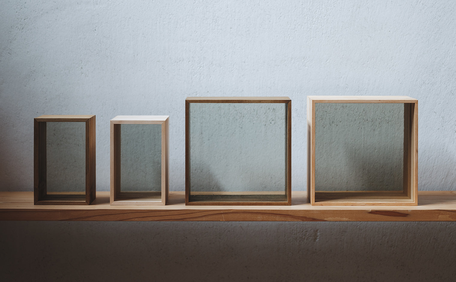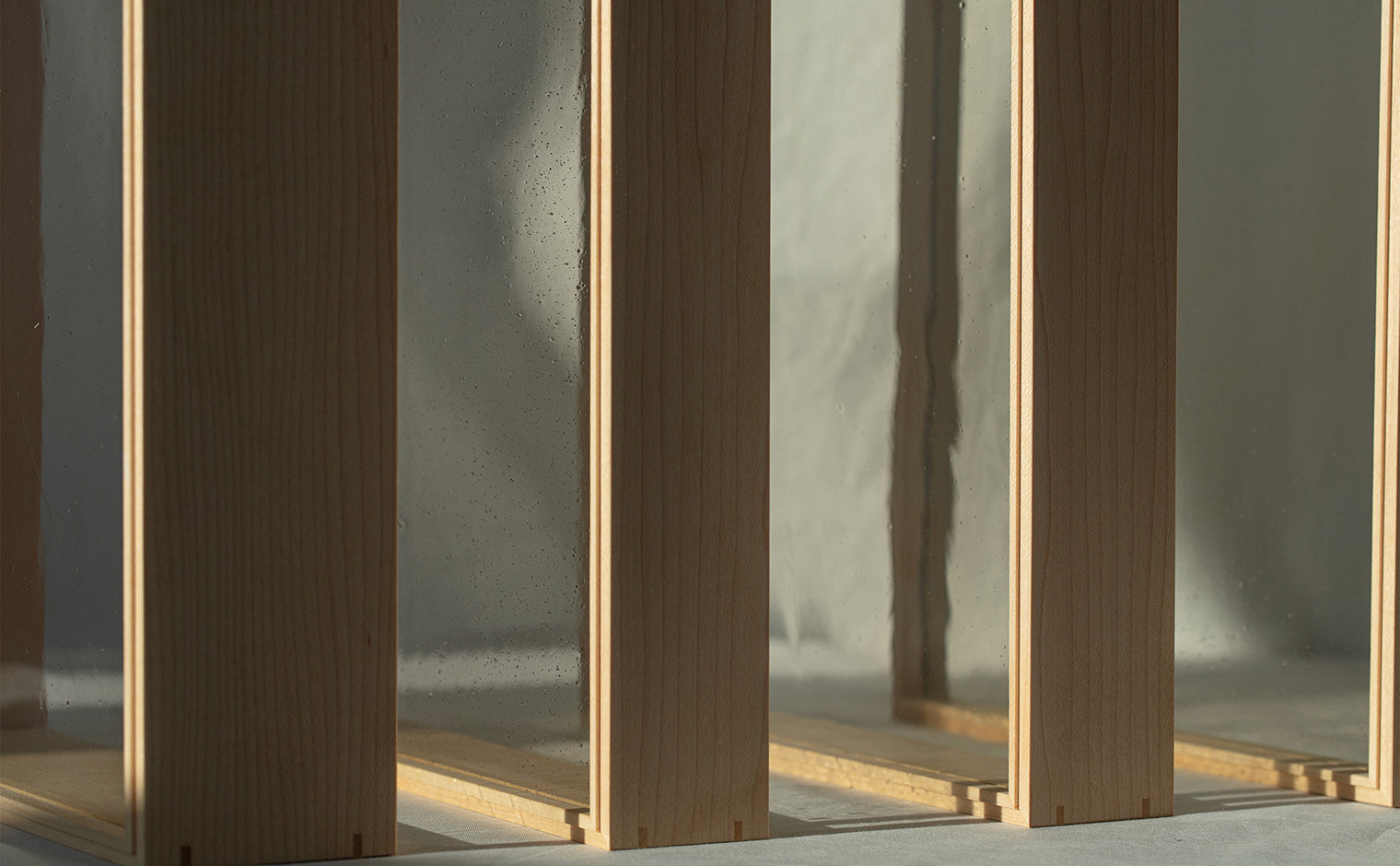 Material: custom-blended grey-tinted glass. / Japanese Maple wood.