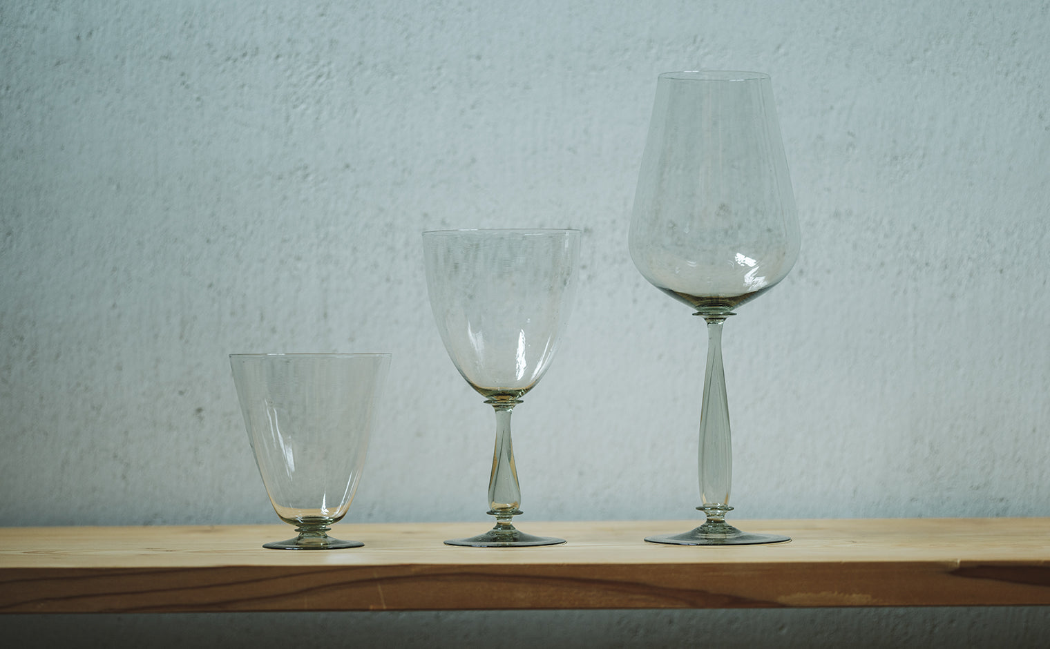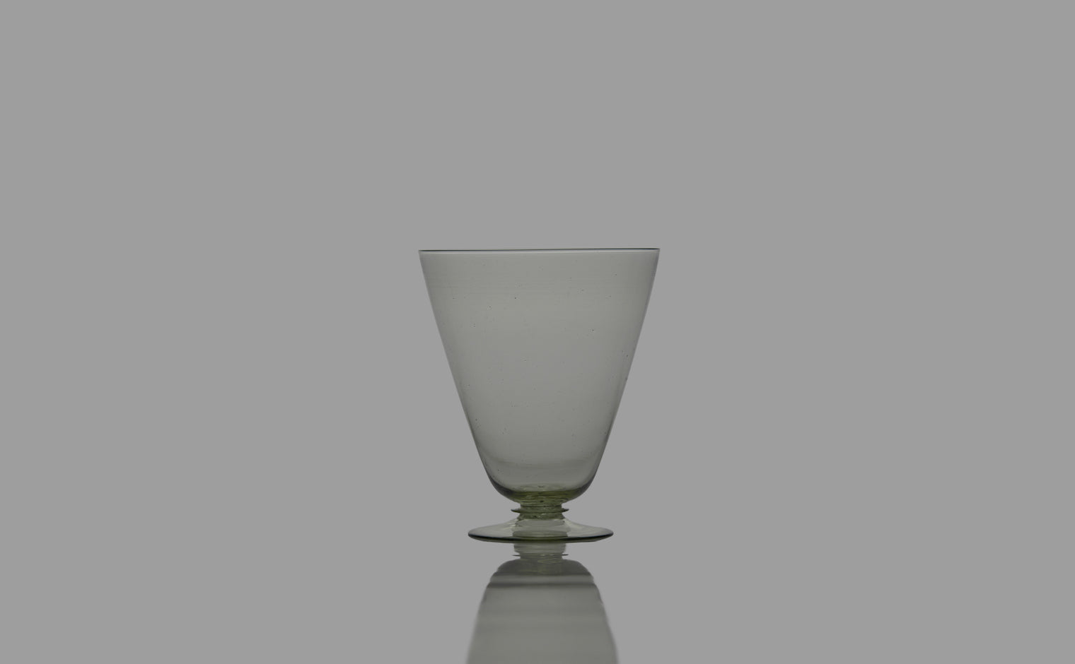 A Glint of Glass. With its wide delicate, smooth rim opening, elegantly curved body, and a short stem attached to a sturdy circular base finished with the artisan’s signature blend of greyish-tinged glass, the Peter Ivy Short Goblet glints like a spark of light in the palm of your hand.